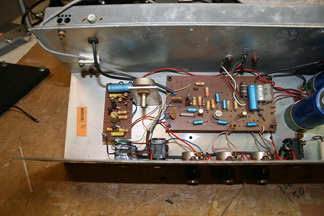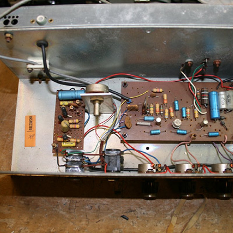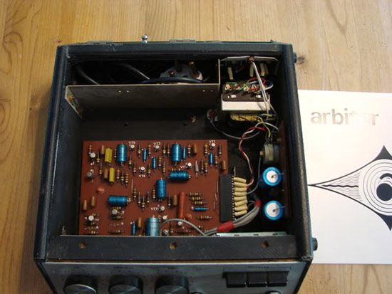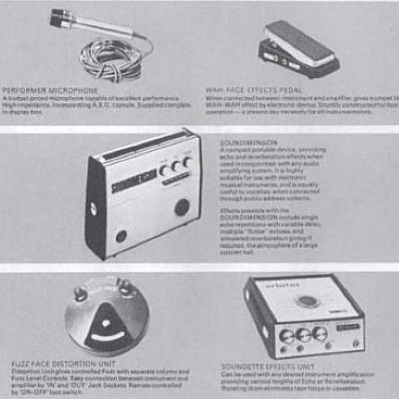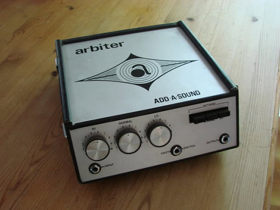 In 1969, Ritchie acquired several boxes of Arbiters in one go, an “Add-A-Sound” (also used by Frank Zappa from approx. 1973), and a “Soundette”. The Soundette was a belt-driven disc echo (similar to the friction wheel-driven Binson Echorec) featuring a total of 5 heads, incl. recording & erase head and GE transistors. The echo time was, however, quite short due to the high rotational speed of the disc. For “Mandrake Root”, Blackmore replaced the Marshall #2021 by the Soundette approximately until mid-1970 after which the device disappeared into RB’s evidence room. But Ritchie was really taken with the Add-A-Sound, in particular. This was a Fuzz that could generate an octave higher and an octave lower at the push of a button. Many tracks on the “In Rock” were recorded with this, e.g., the octave effect of Living Wreck or Flight of a Rat. The Add-A-Sound is noticeable almost throughout the entire record. At the same time, a new FuzzFace of 1969 was frequently employed (BC108C), e.g., in the intro to “Speed King”. This one was usually employed far less as an aggressive Fuzz rather than to just crunch the signal. The low gain sound of the subsequent “FireBall” was also played in with this FuzzFace, along with a Hornby Skewes as booster.